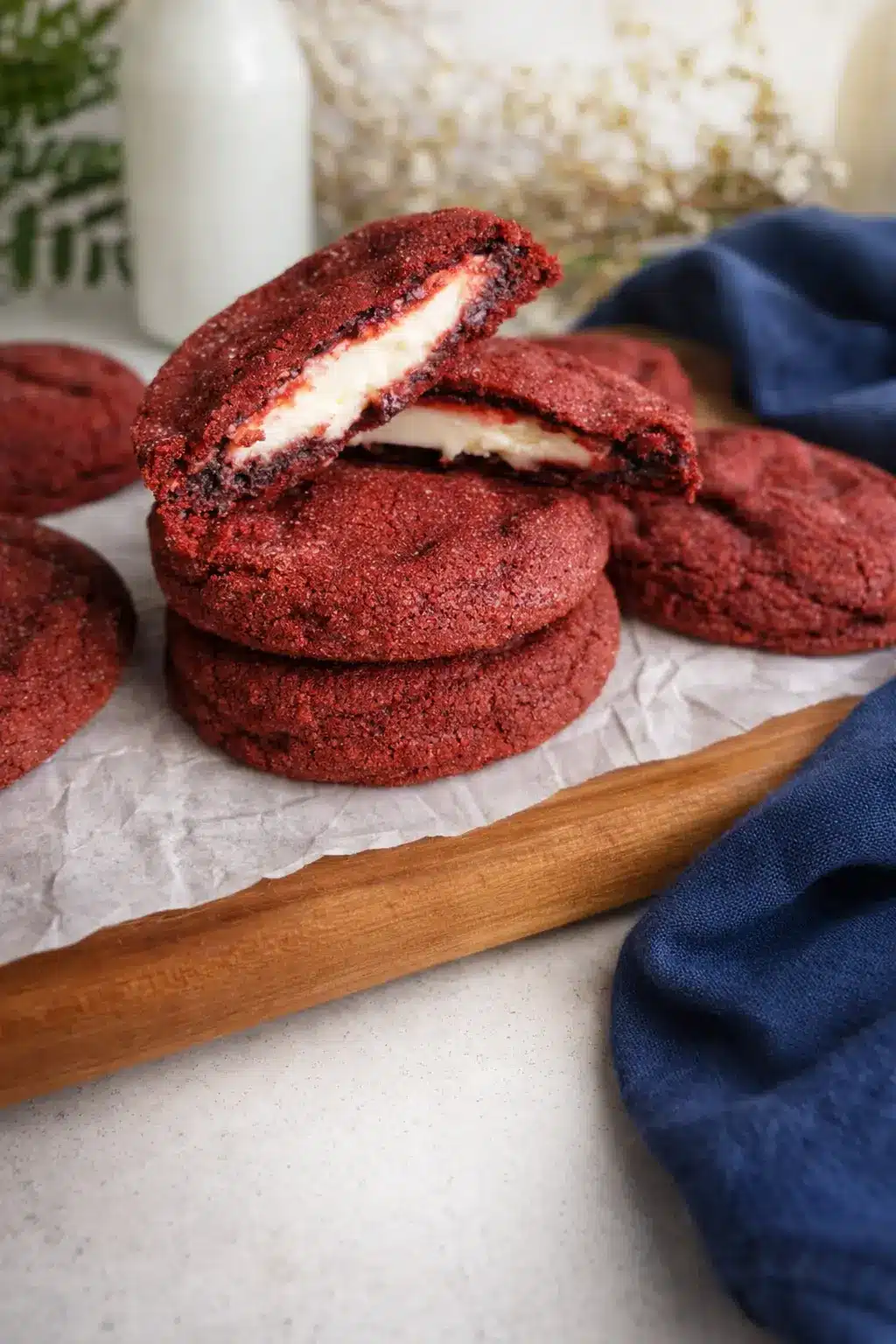 These cheesecake stuffed red velvet cookies always look stunning on any dessert table. The red velvet dough and creamy filling create that irresistible bakery-style balance of color and flavor. Once you’ve made them once, you’ll find yourself repeating this recipe every time a celebration rolls around.