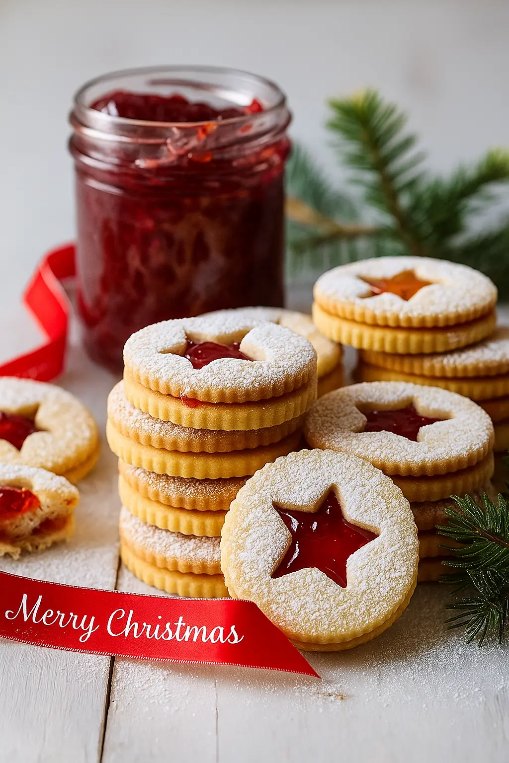 Buttery, melt-in-your-mouth Christmas biscuits filled with jewel-like jam centers. Perfect for gifting, festive gatherings, or tea-time spreads. Simple to make and endlessly customizable with your favorite jams.
