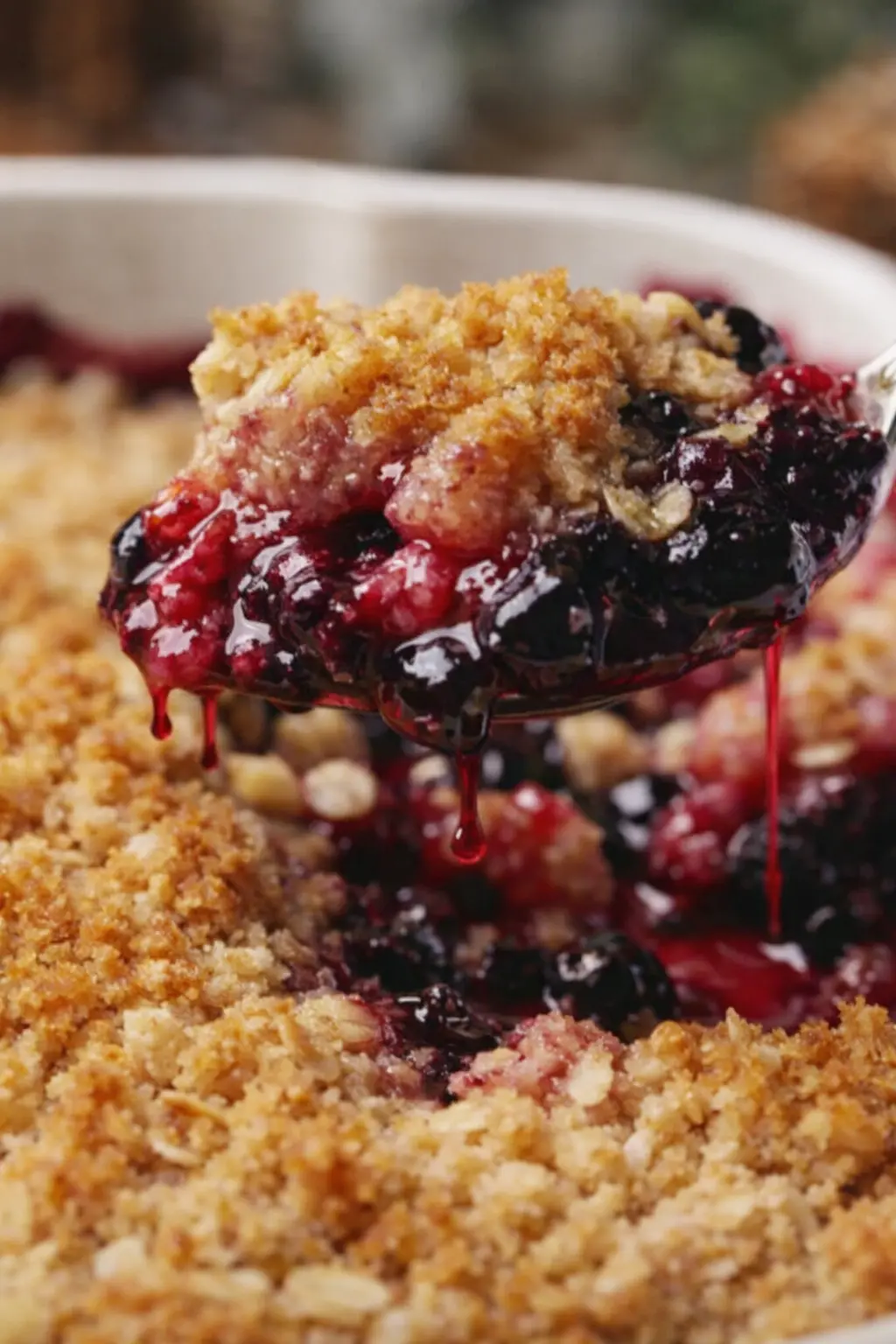 Every bite balances texture the flaky oat crumble against syrupy berries that bubble up at the edges. The melted butter binds everything without making it heavy, and the cinnamon adds warmth that ties it all together.