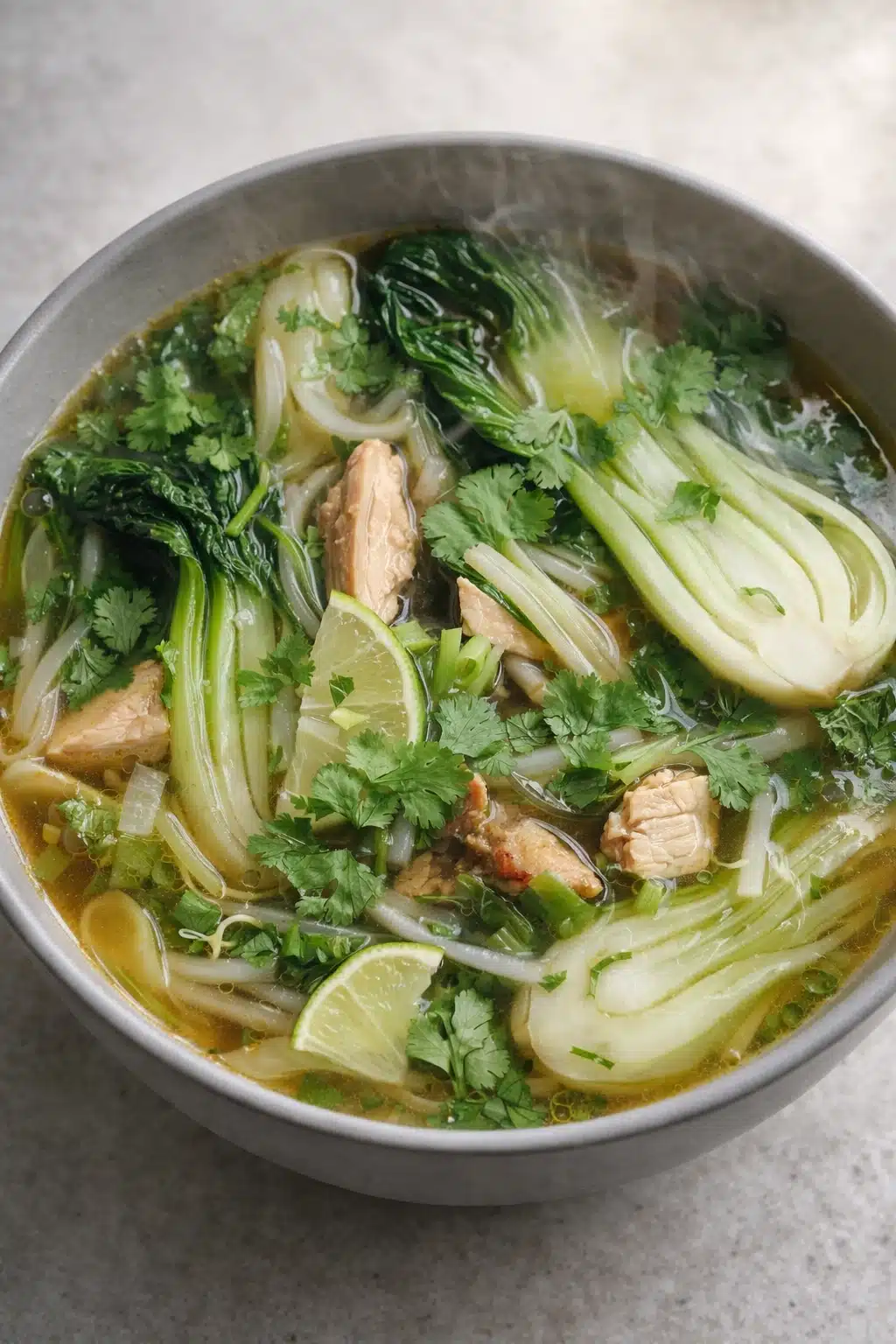 When a cold evening drapes your kitchen in quiet, a bowl of hearty bok choy chicken soup feels like the kind of comfort that restores balance. Its broth steams with ginger, soy, and garlic, wrapping around the senses like a soft blanket after a long day. It’s warm, savory, and full of life just what your soul craves.