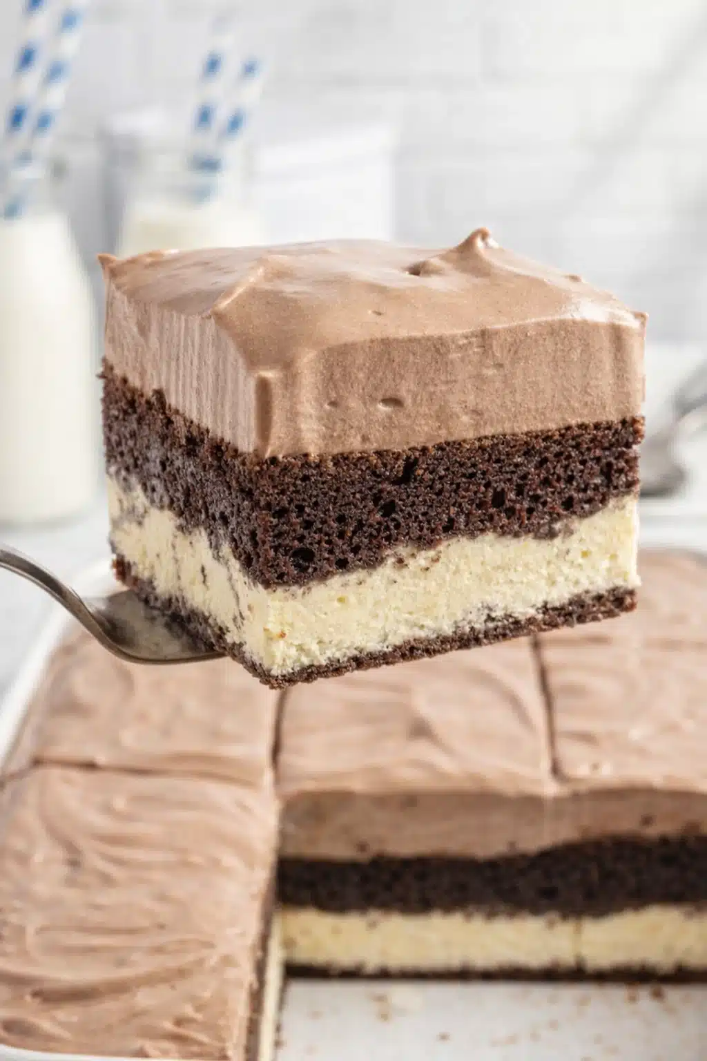 Love Cake is a layered dessert that beautifully combines rich chocolate cake, creamy ricotta, and a cloud-like pudding topping. During baking, the ricotta layer gently sinks through the batter, creating a custard-like base beneath the moist cake. Once chilled and frosted, it’s a Valentine’s dream—sweet, creamy, and melt-in-your-mouth perfect.