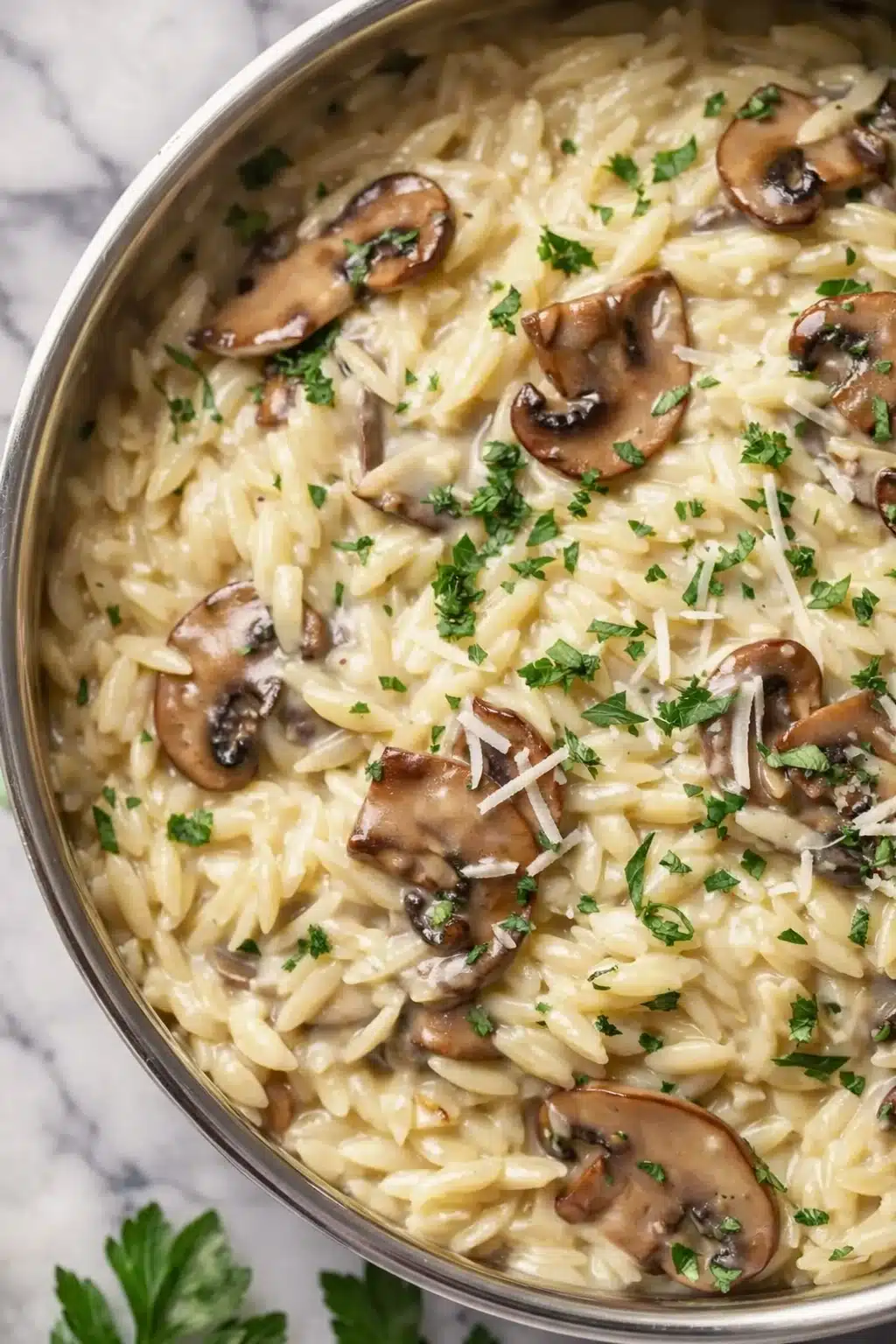 A creamy, comforting one-pot orzo with mushrooms recipe loaded with garlic, Parmesan, and fresh herbs. Perfect for busy weeknights or cozy dinners.