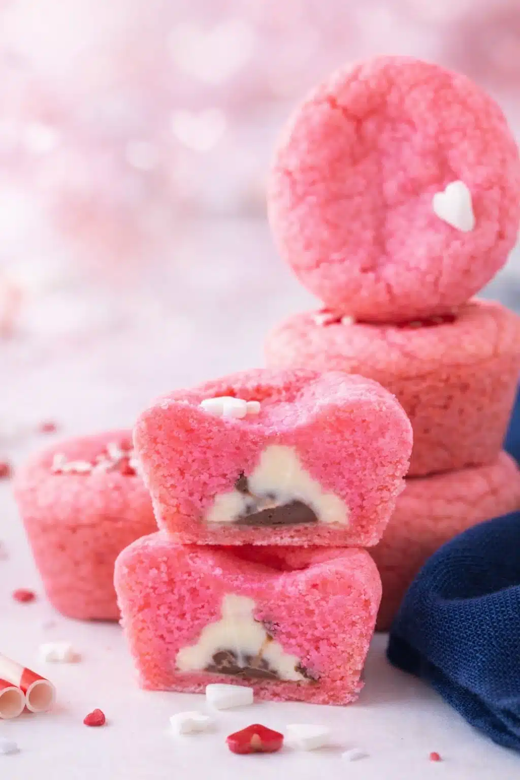 You can easily switch things up. Try snickerdoodle mix instead of sugar cookie mix (just skip the cinnamon sugar). Use unsalted butter plus a pinch of salt if that’s what you have. Natural coloring like strawberry or raspberry juice works great too. For the candy, swap Hugs for Rolos, caramel M&Ms, or Reese’s minis. Add fun toppings like chocolate drizzle, frosting, or mini M&Ms for even more Valentine flair.
